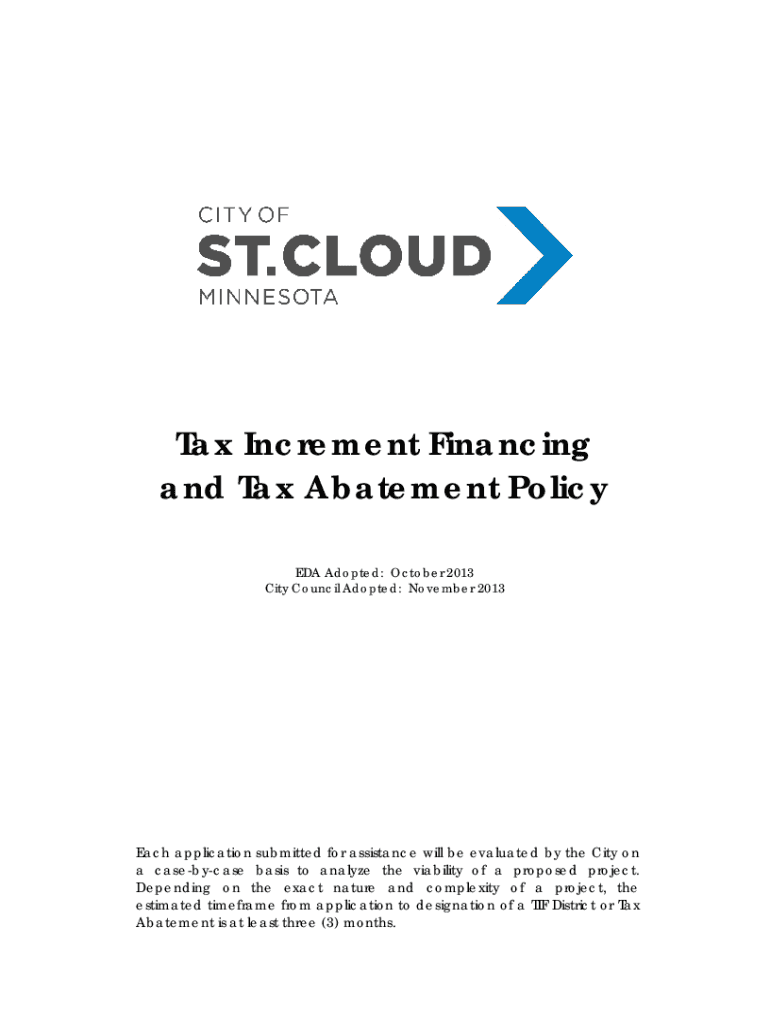 Get the free Tax Increment Financing and Tax Abatement Policy