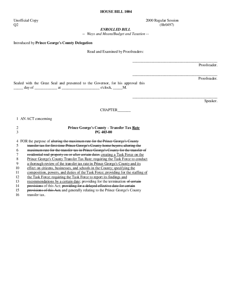 HOUSE BILL 1004 Unofficial Copy Q22000 Regular Session (0lr0497) ENROLLED BILL Ways and Means/Budget and Taxation Introduced by Prince George\'s County Delegation Read and Examined by Proofreaders: