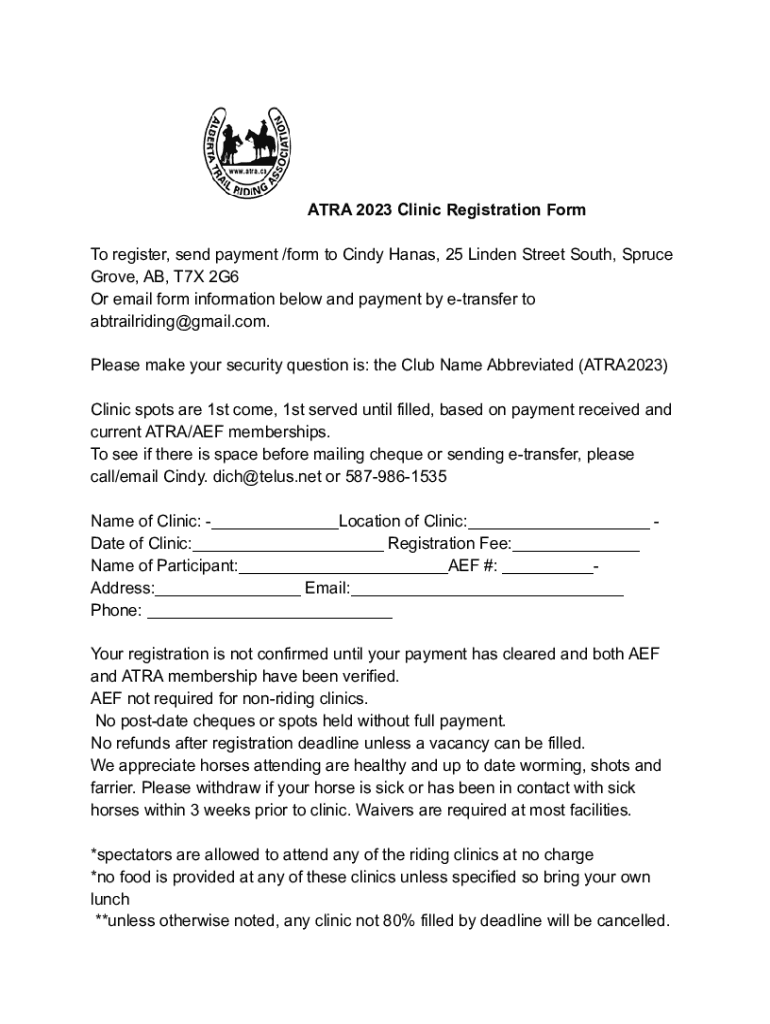 Fill out your atra 2023 clinic registration online with pdfFiller!