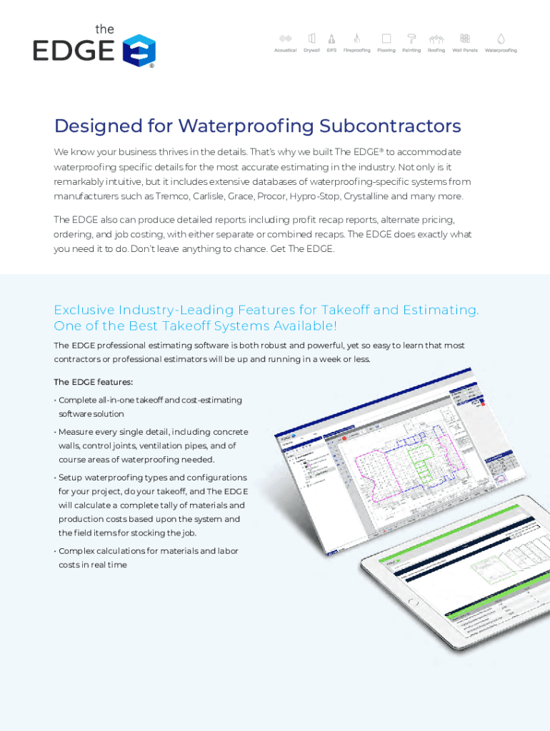 Designed for Waterproofing Subcontractors We know your business thrives in the details. That's why we built The EDGE to accommodate waterproofing specific details for the most accurate estimating