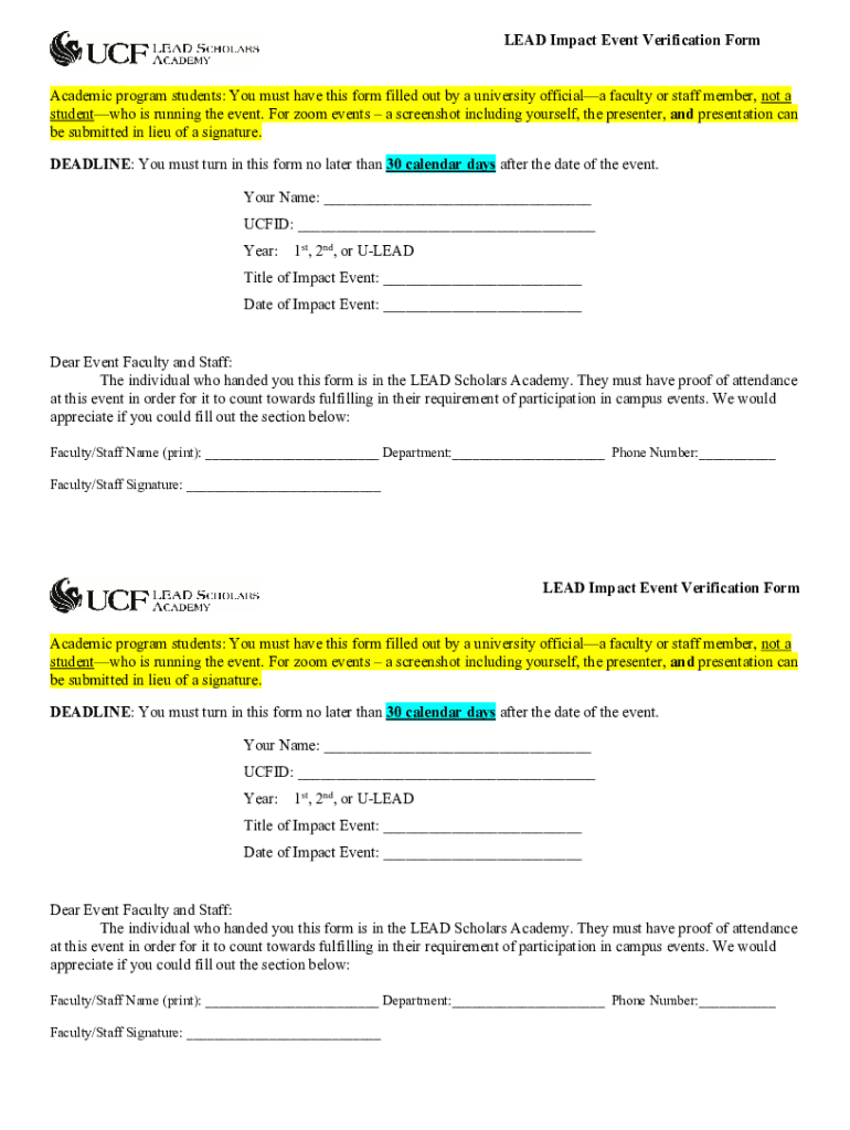 Get the free LEAD Impact Event Verification Form Academic program students