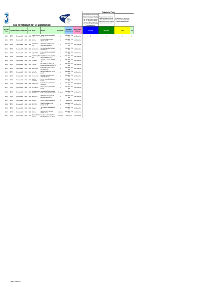 Planning Authority TotalsAnnual Roll Out Plans 20062007 Site Specific Information H3G Nominal NumberPlanning Authority National Park AuthorityEastingNorthingSite Name Site AddressMK0213BEDFORDDoes