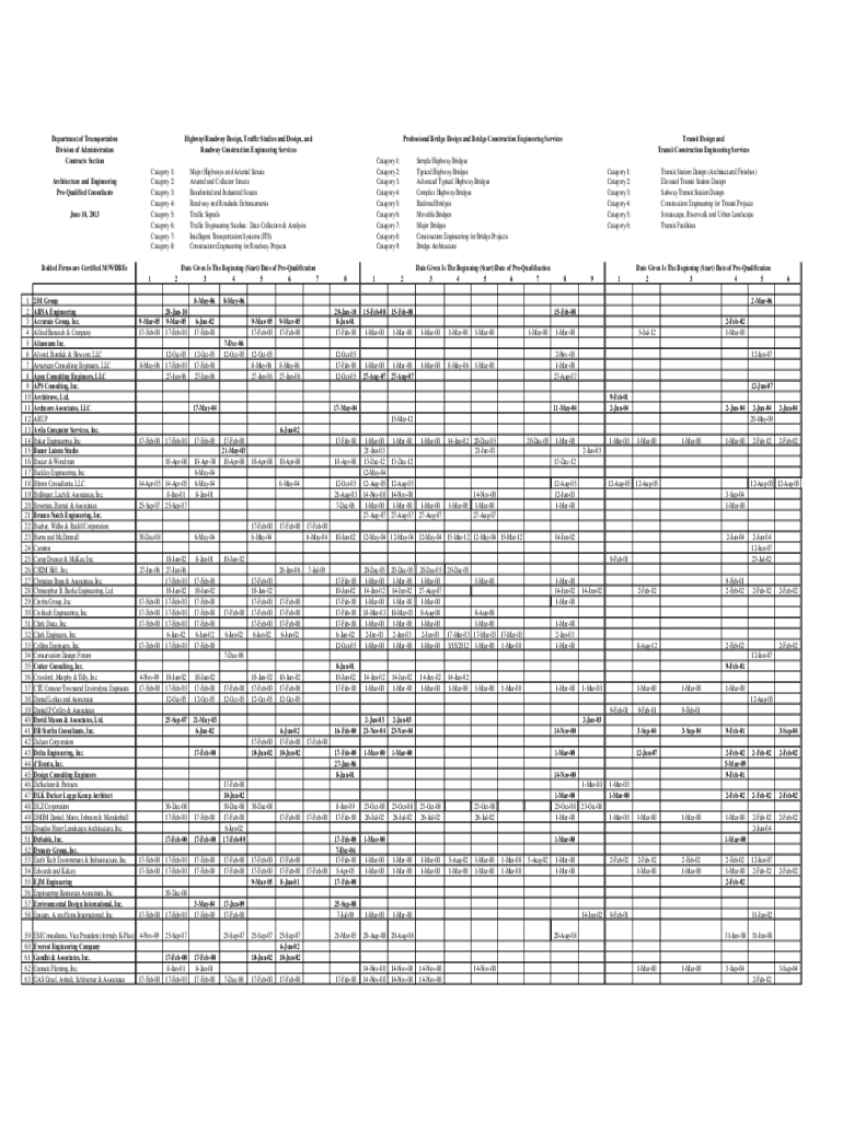 Department of Transportation Division of Administration Contracts SectionHighway/Roadway Design, Traffic Studies and Design, and Roadway Construction Engineering Services Category 1: Category 2: Category