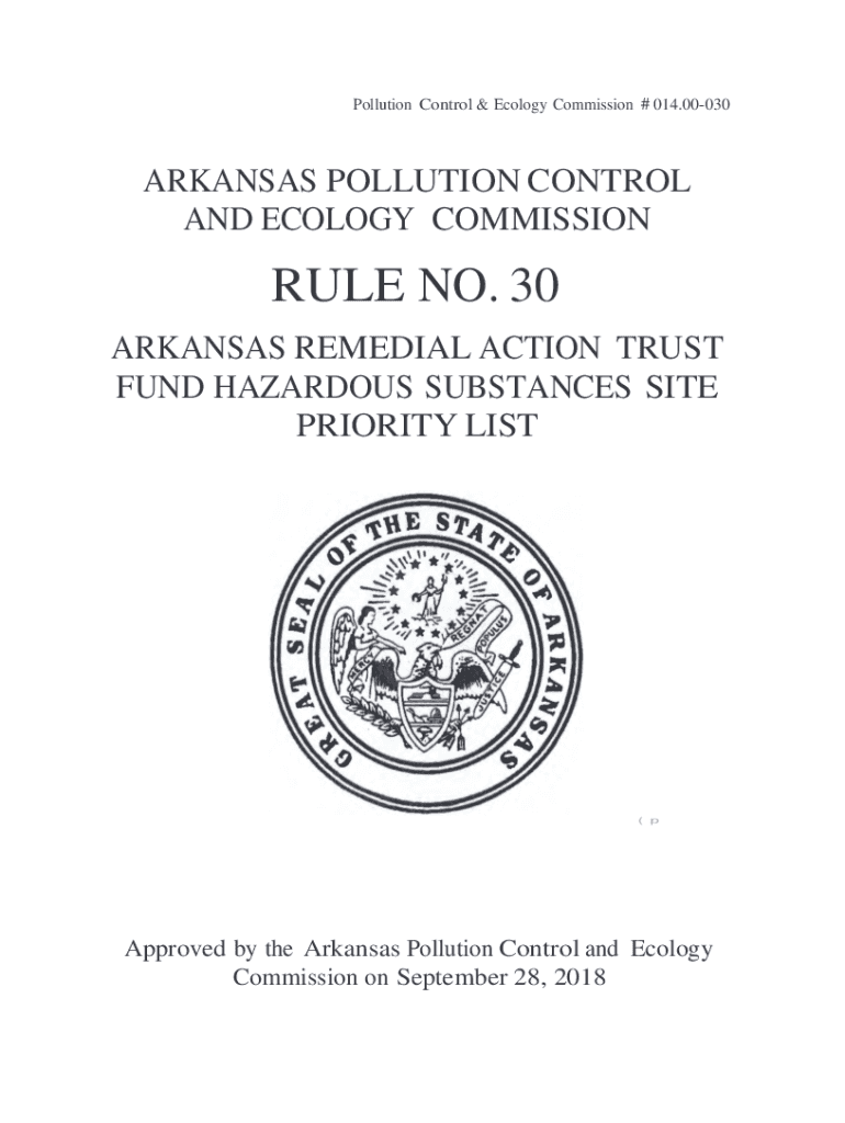Pollution Control & Ecology Commission # 014.00030ARKANSAS POLLUTION CONTROL AND ECOLOGY COMMISSIONABLE NO. 30 ARKANSAS REMEDIAL ACTION TRUST FUND HAZARDOUS SUBSTANCES SITE PRIORITY LIST(approved