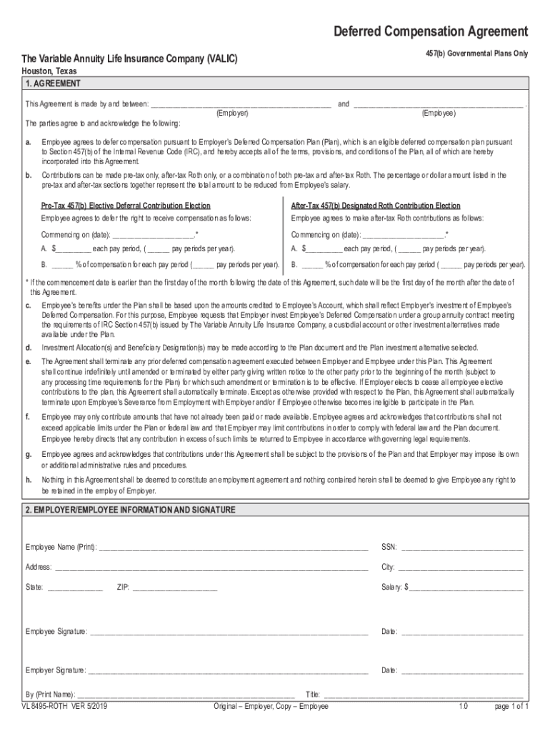 Deferred Compensation Agreement The Variable Annuity Life Insurance Company (VALID)457(b) Governmental Plans Only Houston, Texas 1. Agreements Agreement is made by and between: ___and ___.(Employer)