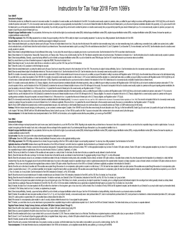 Instructions for Tax Year 2018 Form 1099s Form 1099INT Instructions for Recipient The information provided may be different for covered and noncovered securities. For a description of covered securities,