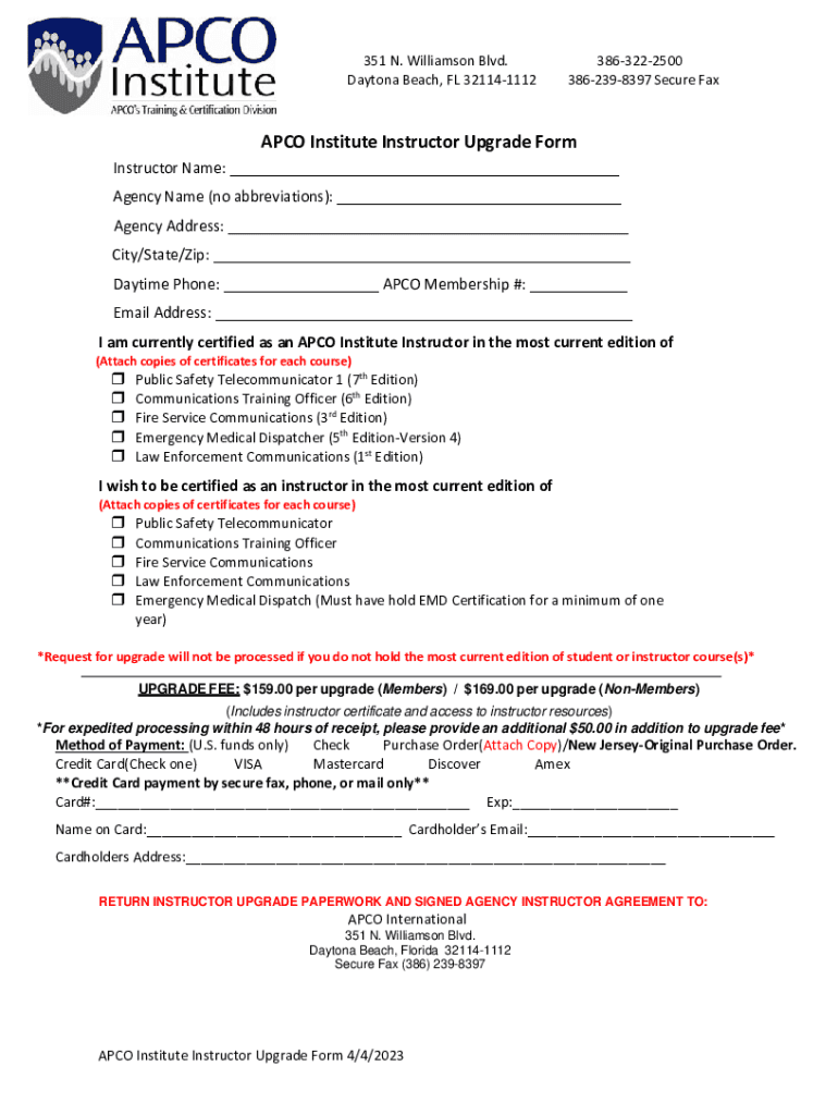 Get the free APCO Institute Instructor Upgrade Form