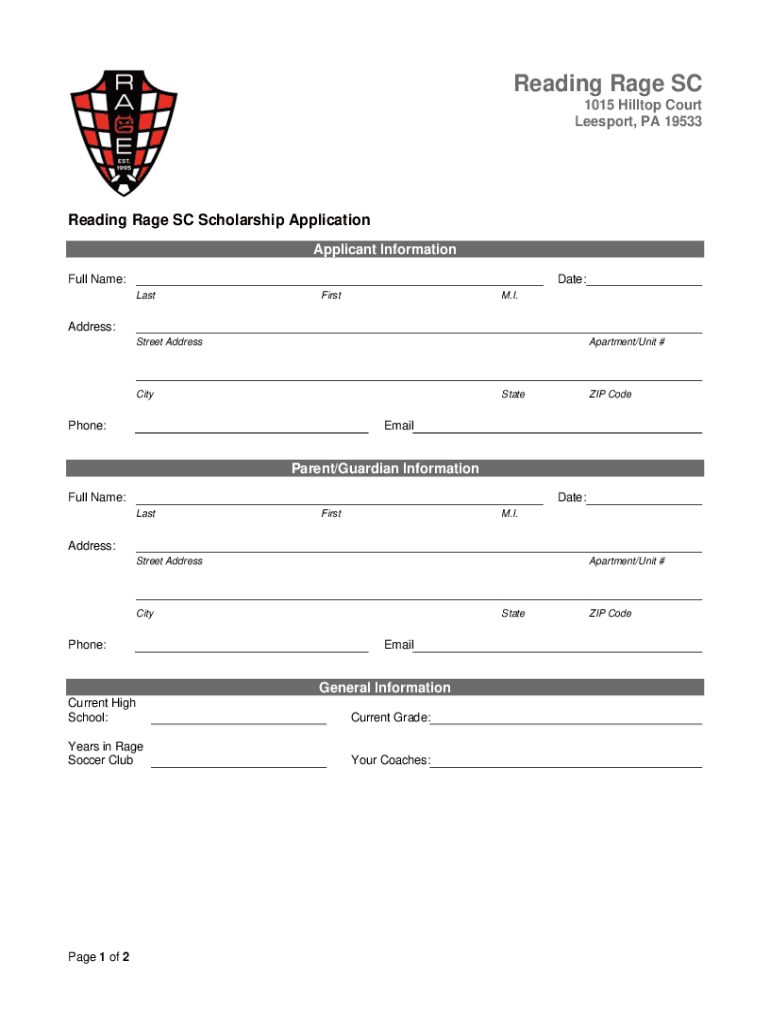 Lee sport, PA 19533Reading Rage SC Scholarship Application