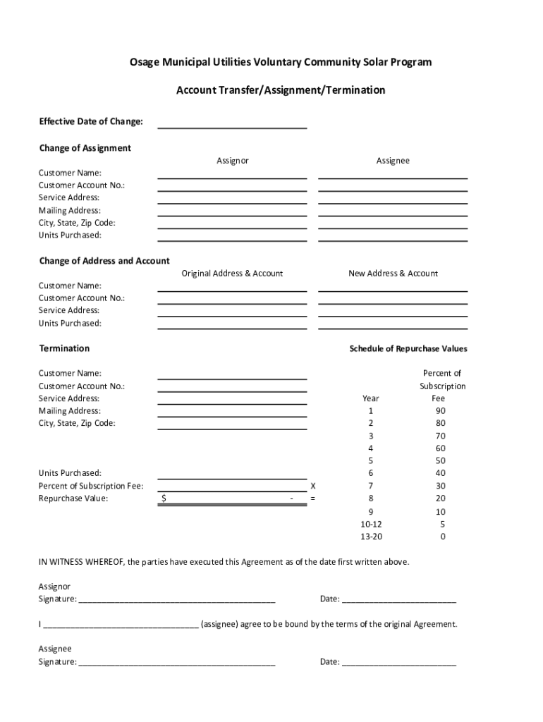 Account Transfer/Assignment/Termination