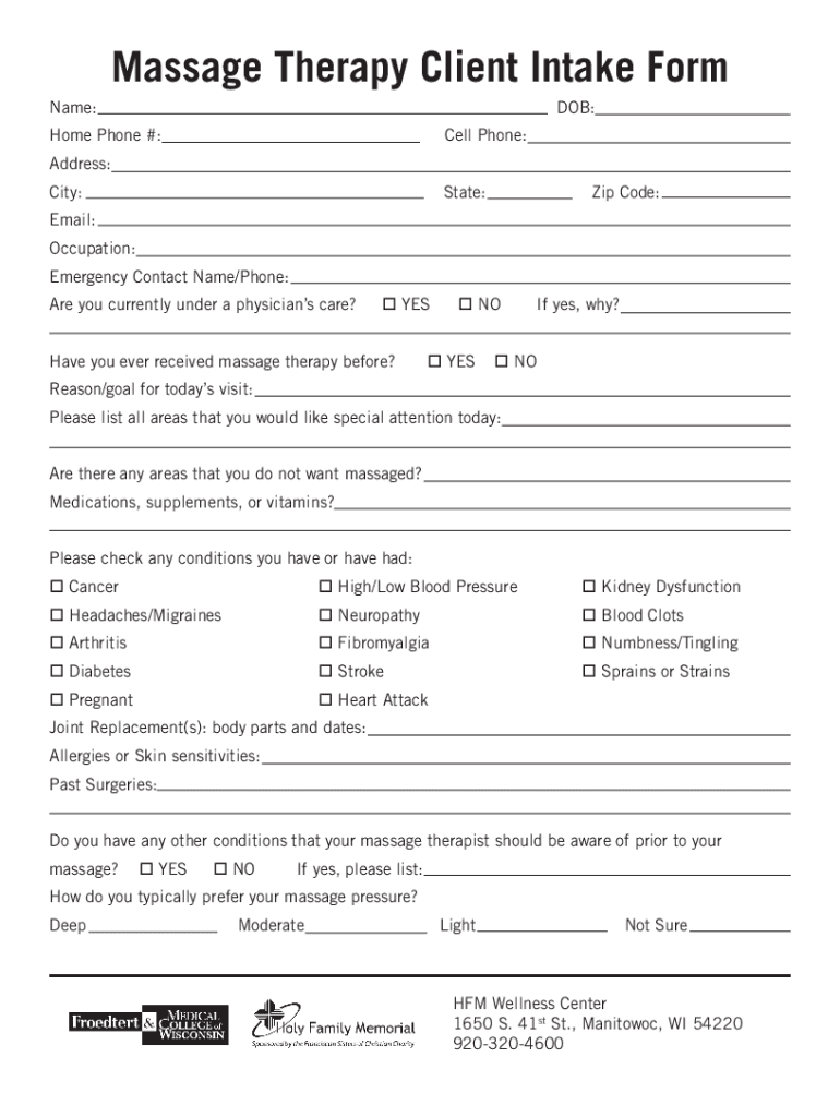 Anyone receiving a massage at a professional massage therapy clinic or spa may be required to fill out a 59 best massage intake form.