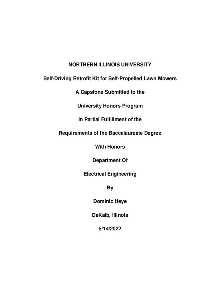 NORTHERN ILLINOIS UNIVERSITY Sulfurizing Retrofit Kit for SelfPropelled Lawn Mowers A Capstone Submitted to the University Honors Program In Partial Fulfillment of the Requirements of the Baccalaureate
