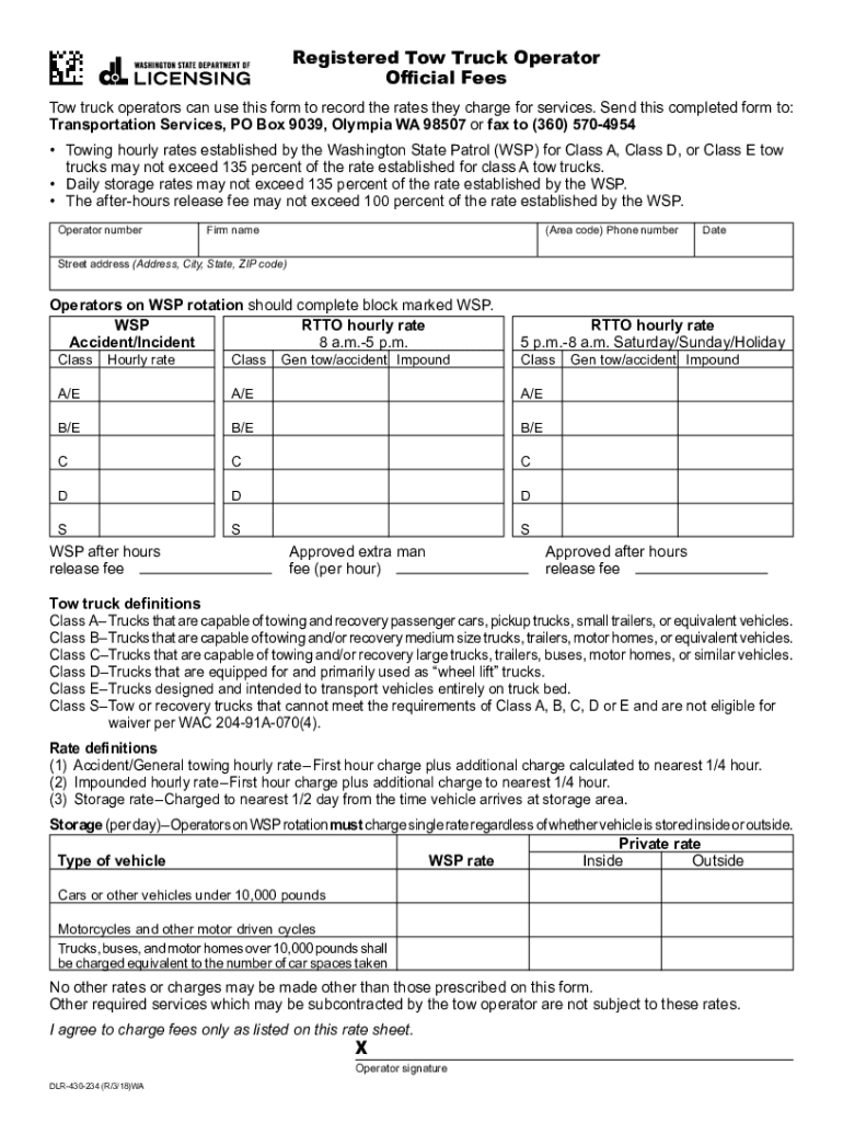 Click here to START or CLEAR, then hit the TAB buttonRegistered Tow Truck Operator Official Fees Tow truck operators can use this form to record the rates they charge for services. Send this completed