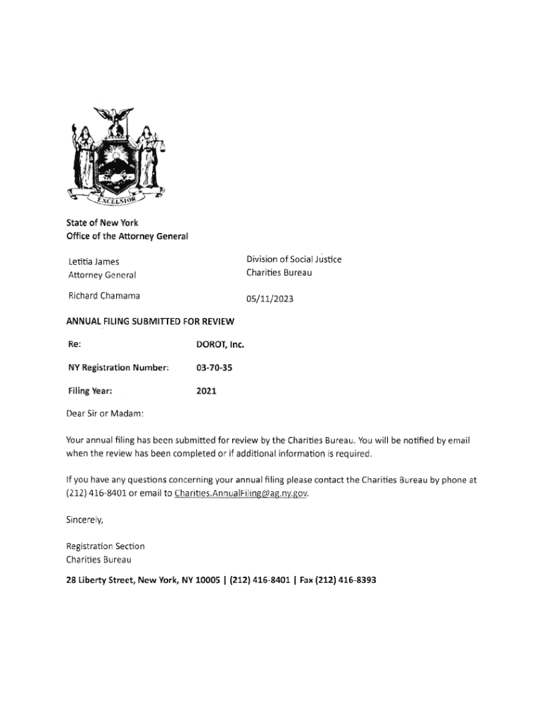 Division of Social. Justice Letitia JamesAttorney GeneraCharities BureauIRichard Chamorros/LL/2023ANNUAL FILING SUBMITTED FOR REVIEW