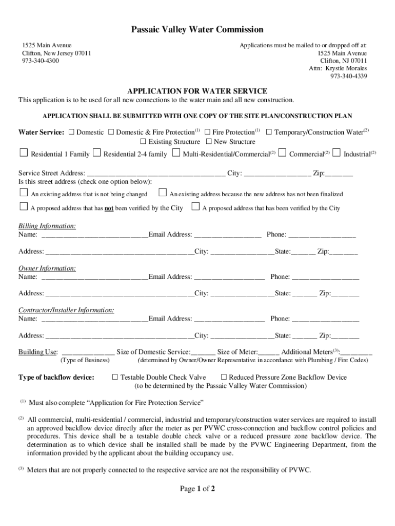 Passaic Valley Water Commission 1525 Main Avenue Clifton, New Jersey 07011 9733404300Applications must be mailed to or dropped off at: 1525 Main Avenue Clifton, NJ 07011 Attn: Wrestle Morales 9733404339APPLICATION