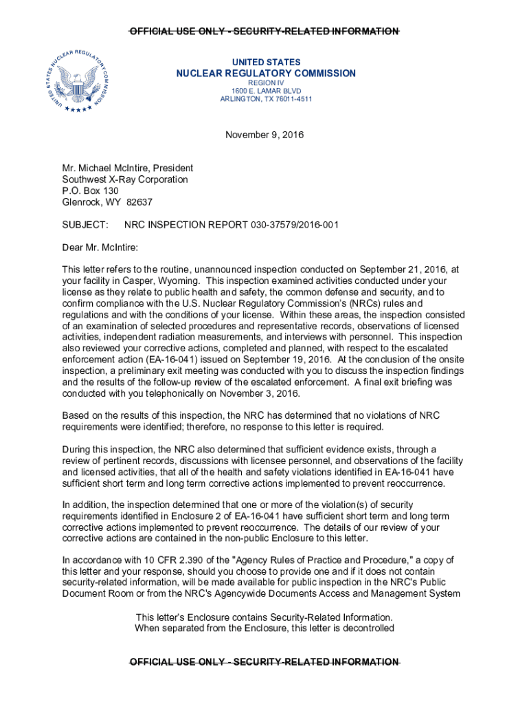 How to fill out nrc inspection report 030375792016001