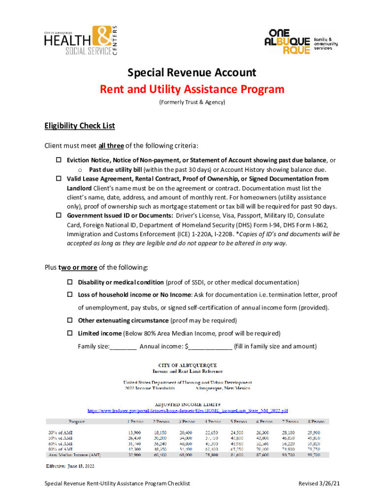 Get the free special-revenue-rent-utility-assistance-program-checklist- ...