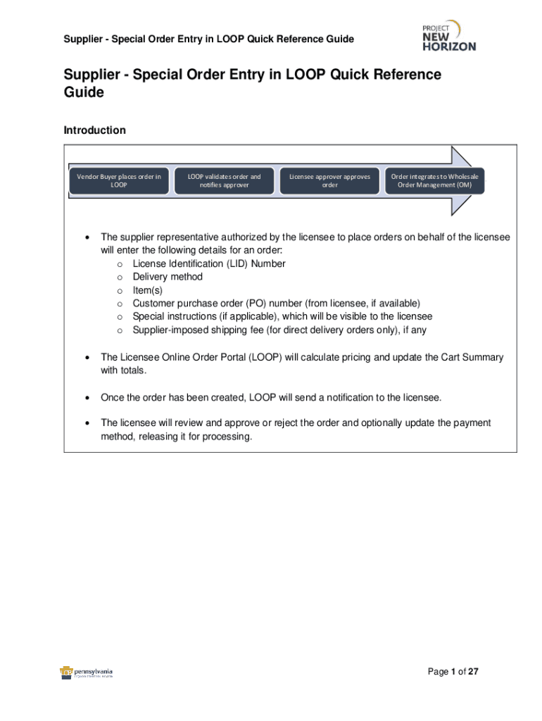 Supplier Special Order Entry in LOOP Quick Reference GuideSupplier Special Order Entry in LOOP Quick Reference
