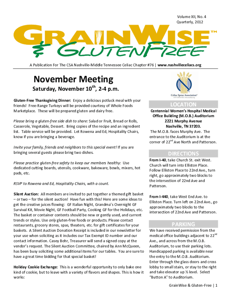Quarterly, 2012A Publication For The CSA NashvilleMiddle Tennessee Celiac Chapter #76 | www.nashvilleceliacs.orgNovember Meeting