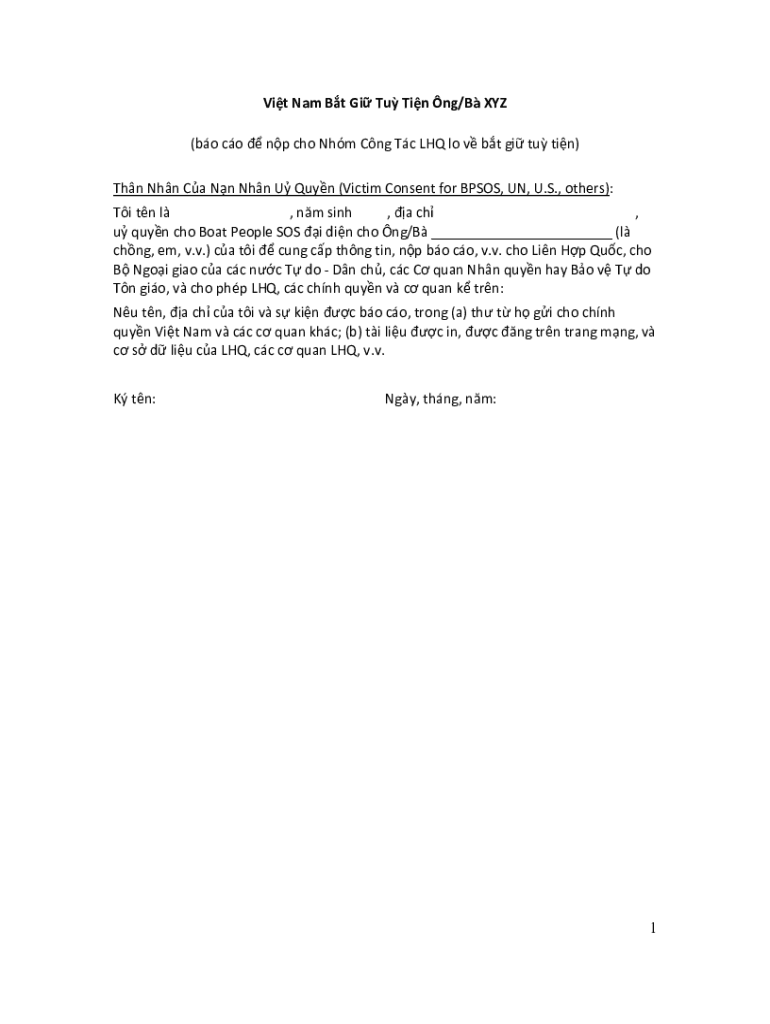 The NHN Ca In NHN U Quin (Victim Consent for BP SOS, UN, U.S., others):