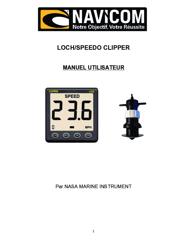 LOCK/SPEED CLIPPER MANUEL UTILISATEURPar NASA MARINE INSTRUMENT1Vous TES en possession Du Lock Clipper de Nasa Marine. CET apparel est live Alec : 1 capture roué tube Alec able DE 7 m 1 passé toque