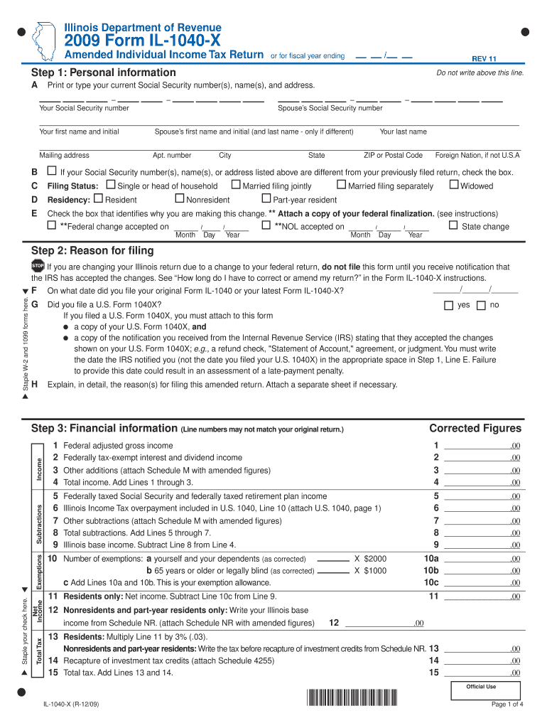 How to fill out 2009 il-1040-x: