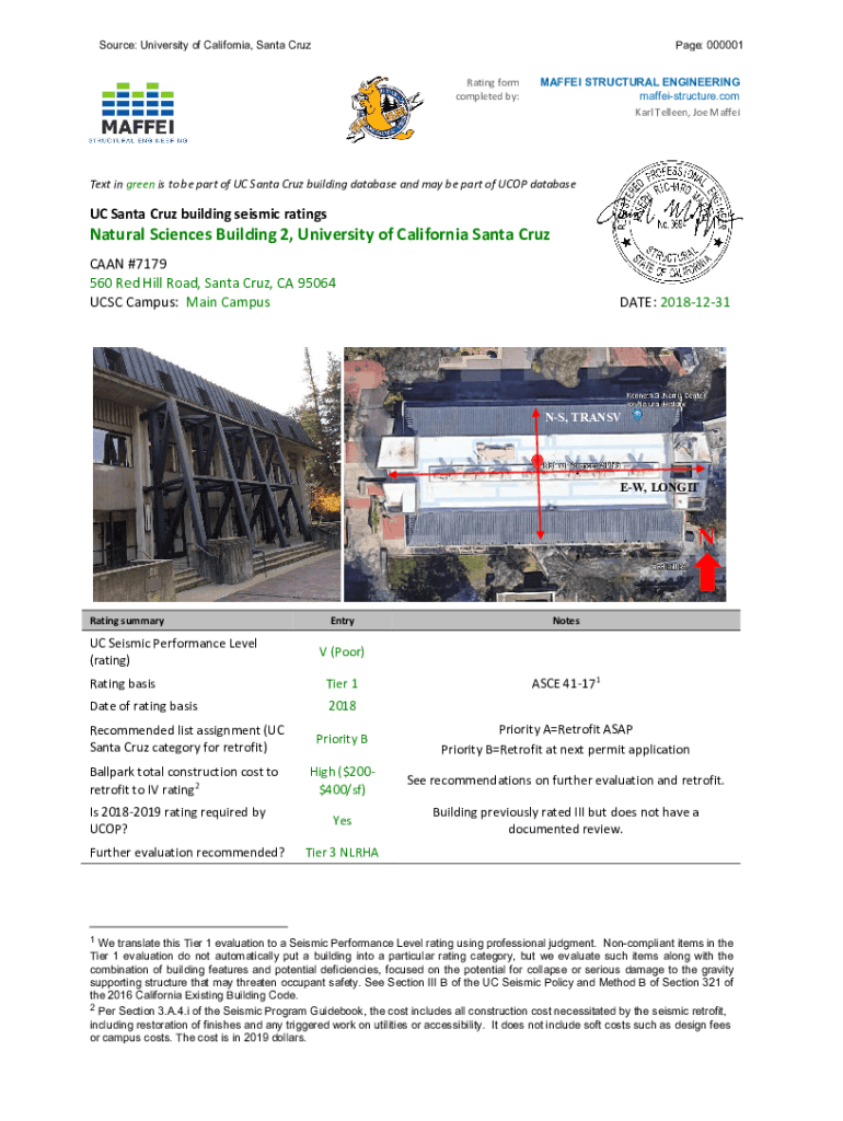Source: University of California, Santa Cruz Page: 000001Rating form completed by:MAF FEI STRUCTURAL ENGINEERING maffeistructure.com Karl Ellen, Joe MaffeiText in green is to be part of UC Santa Cruz