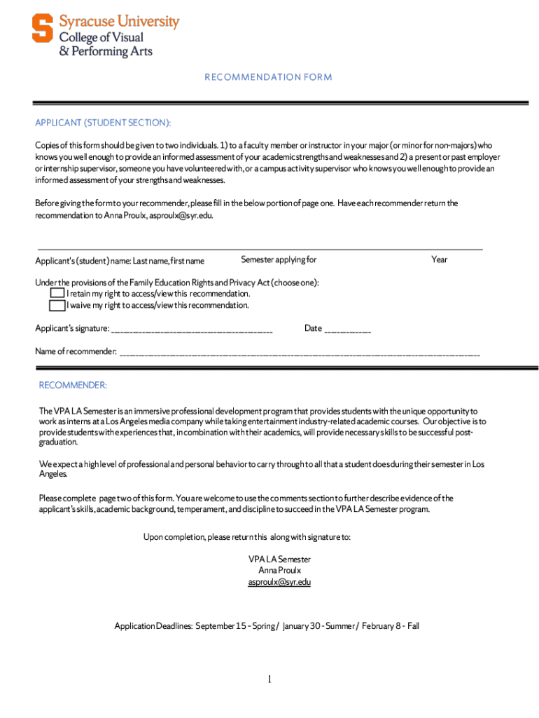 Recommendation Form Applicant Student is not the form you're looking for?Search for another form here.