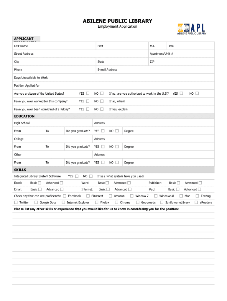 Get the free Job Application Revised 4.4.2014.doc - abilene lib nckls