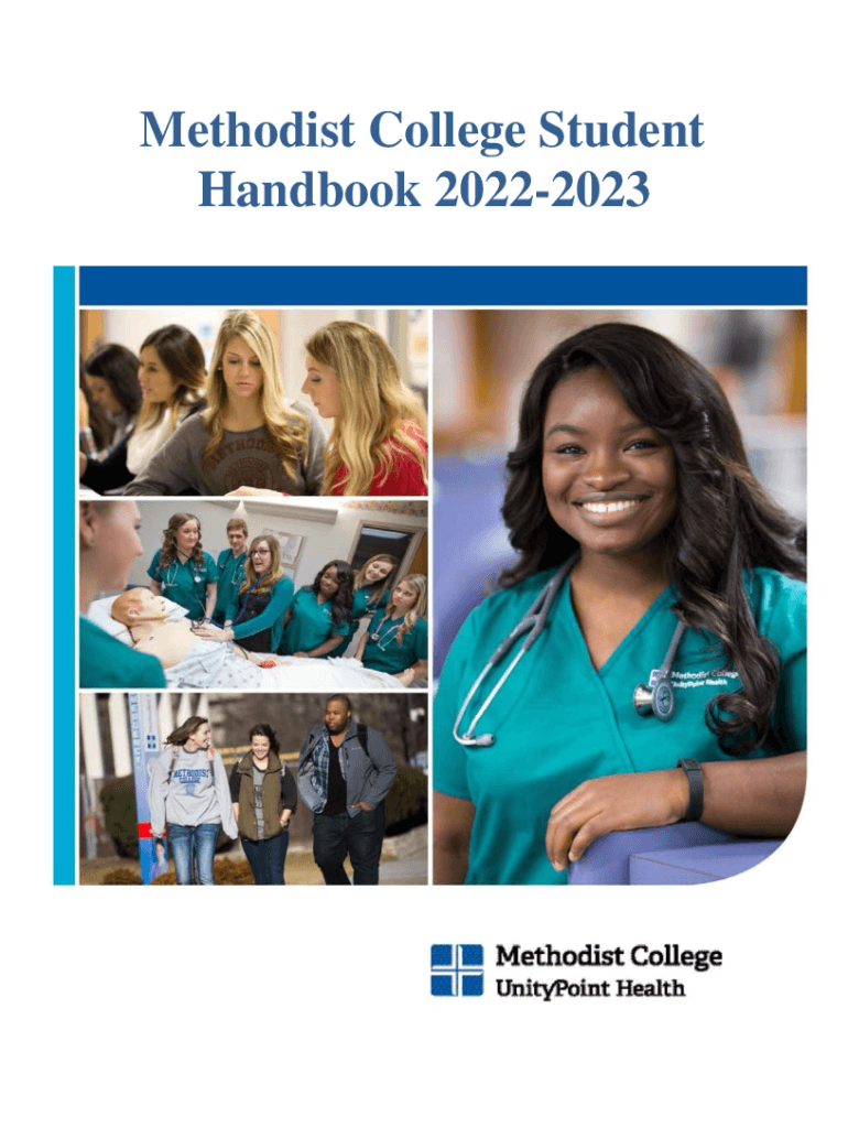 Methodist College Student Handbook 20222023Methodist College 7600 N. Academic Drive, Peoria, IL 61615 Phone: 3096725513 http://www.methodistcol.edu Accredited by: The Higher Learning Commission 230
