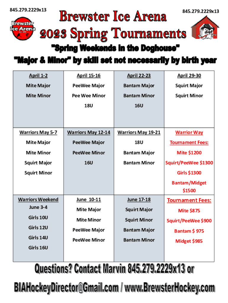 845.279.2229×13845.279.2229×13April 12April 1516April 2223April 2930Mite MajorPeeWee MajorBantam Major Squirt Majority Minored Wee MinorBantam Minor Squirt Minor18U16UWarriors May 57Warriors May