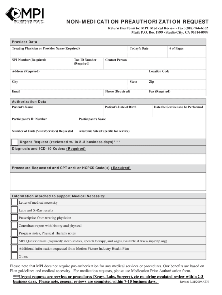 Return this Form to: MPI: Medical Review Fax: (818) 7666532