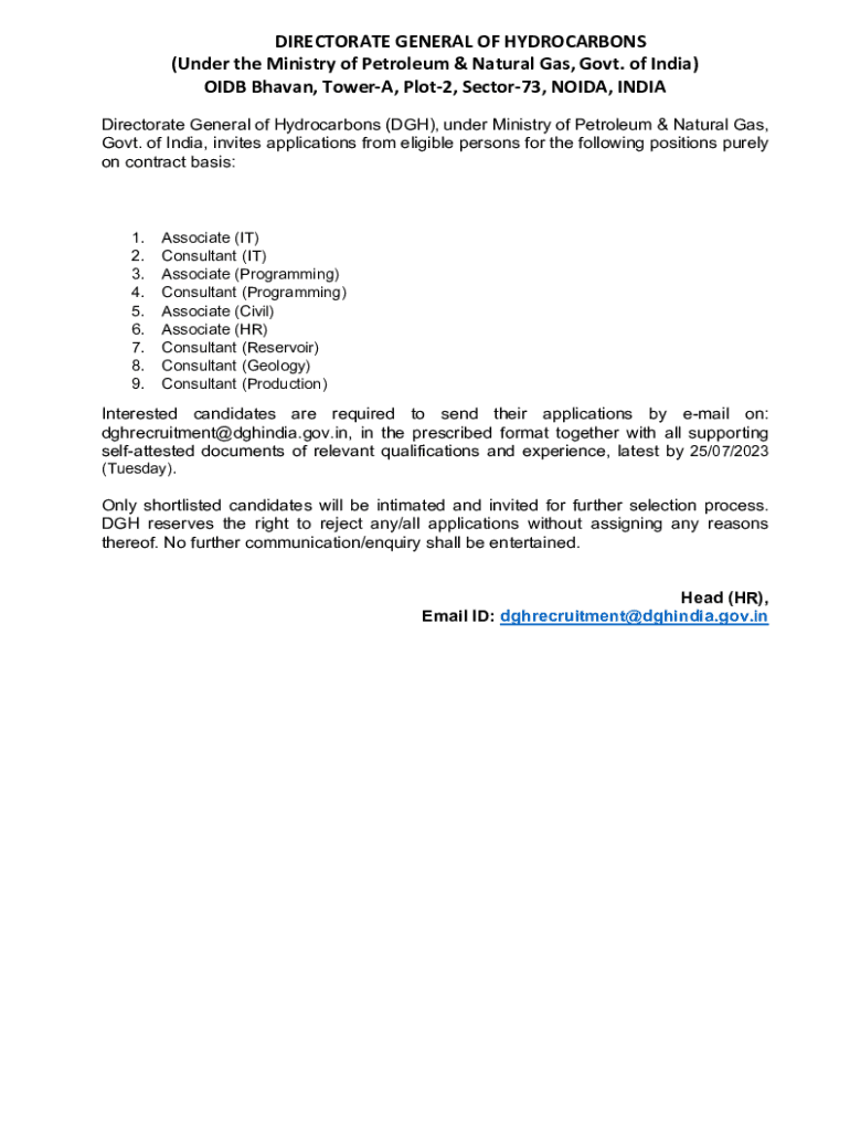 DIRECTORATE GENERAL OF HYDROCARBONS (Under the Ministry of Petroleum & Natural Gas, Govt. of India) ODB Haven, Tower, Plot2, Sector73, NOIDA, INDIA Directorate General of Hydrocarbons (DGH), under