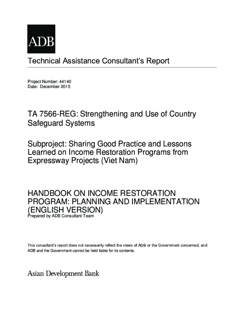 Technical Assistance Consultants Report Project Number: 44140 Date: December 2015TA 7566REG: Strengthening and Use of Country Safeguard Systems Subproject: Sharing Good Practice and Lessons Learned