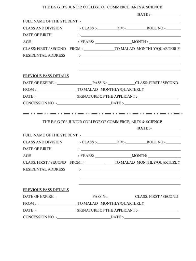 THE B.S.G.DS JUNIOR COLLEGE OF COMMERCE, ARTS & SCIENCE DATE :___ FULL NAME OF THE STUDENT :___ CLASS AND DIVISION: CLASS :___DIV:___ROLL NO:___DATE OF BIRTH:___AGE:YEARS:___MONTH :___CLASS: FIRST