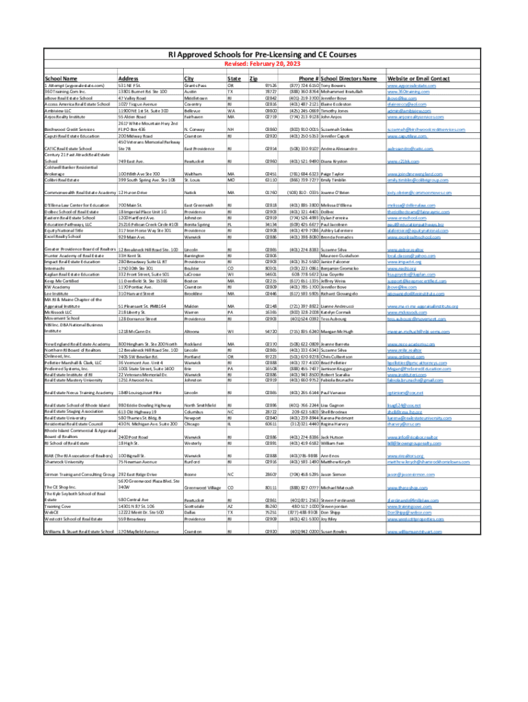 Revised: February 20, 2023School NameAddressCityStateZipPhone # School Directors Immigrants Pass
