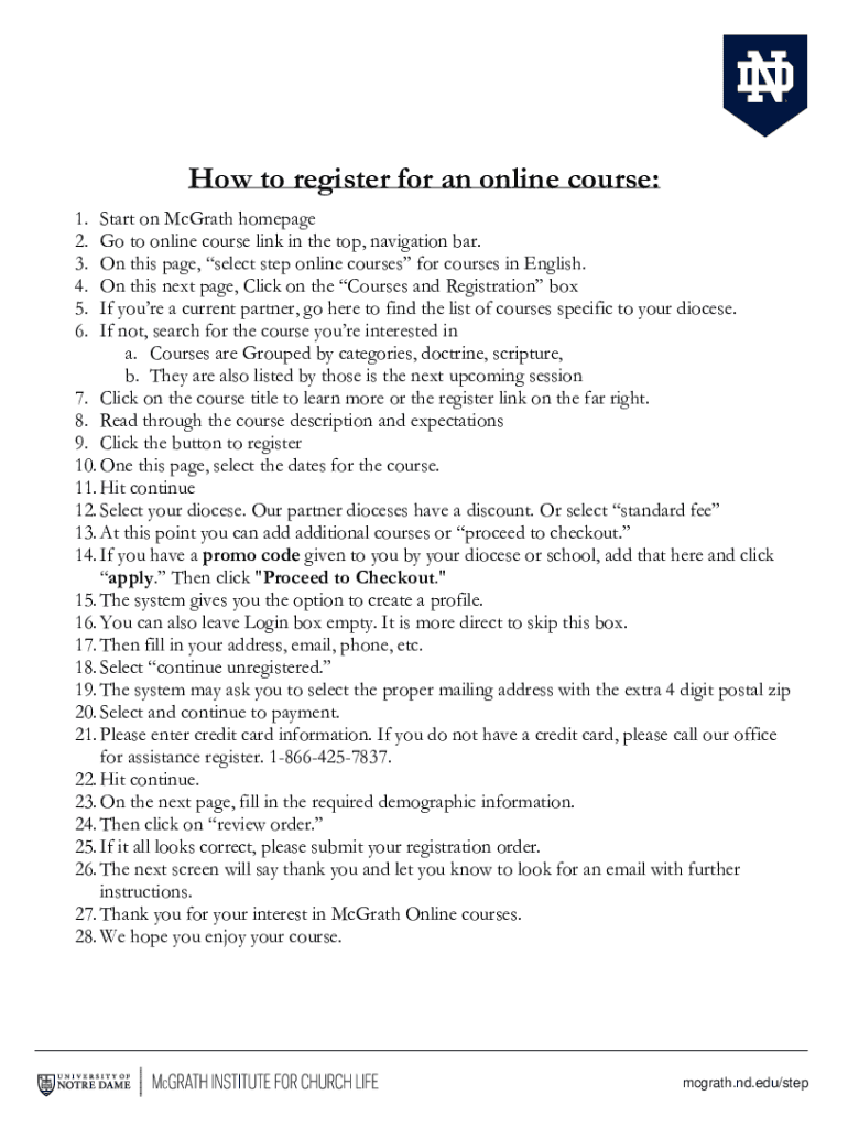 How to register for an online course: 1. 2. 3. 4. 5. 6. Start on McGrath homepage Go to online course link in the top, navigation bar. On this page, select step online courses for courses in English.