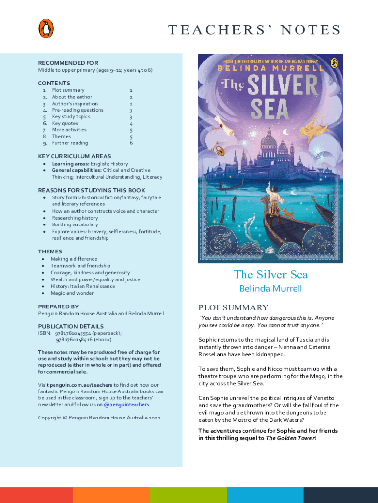 TEACHERS NOTES RECOMMENDED FOR Middle to upper primary (ages 911; years 4 to 6)CONTENTS 1. 2. 3. 4. 5. 6. 7. 8. 9. Plot summary About the author Authors inspiration Rereading questions Key study topics