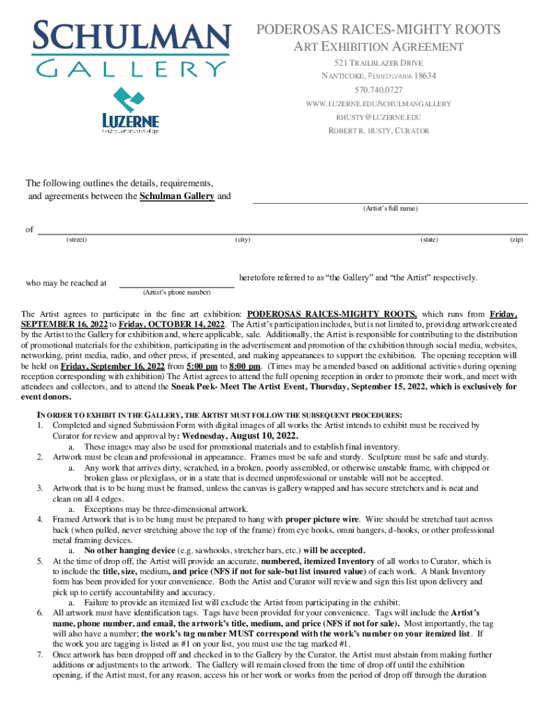 Get the free poderosas raices-mighty roots art exhibition agreement