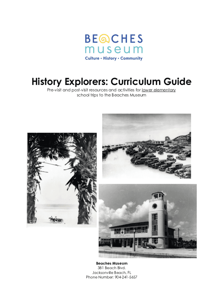 History Explorers: Curriculum Guide Revisit and postvisit resources and activities for lower elementary school trips to the Beaches MuseumBeaches Museum 381 Beach Blvd. Jacksonville Beach, FL Phone