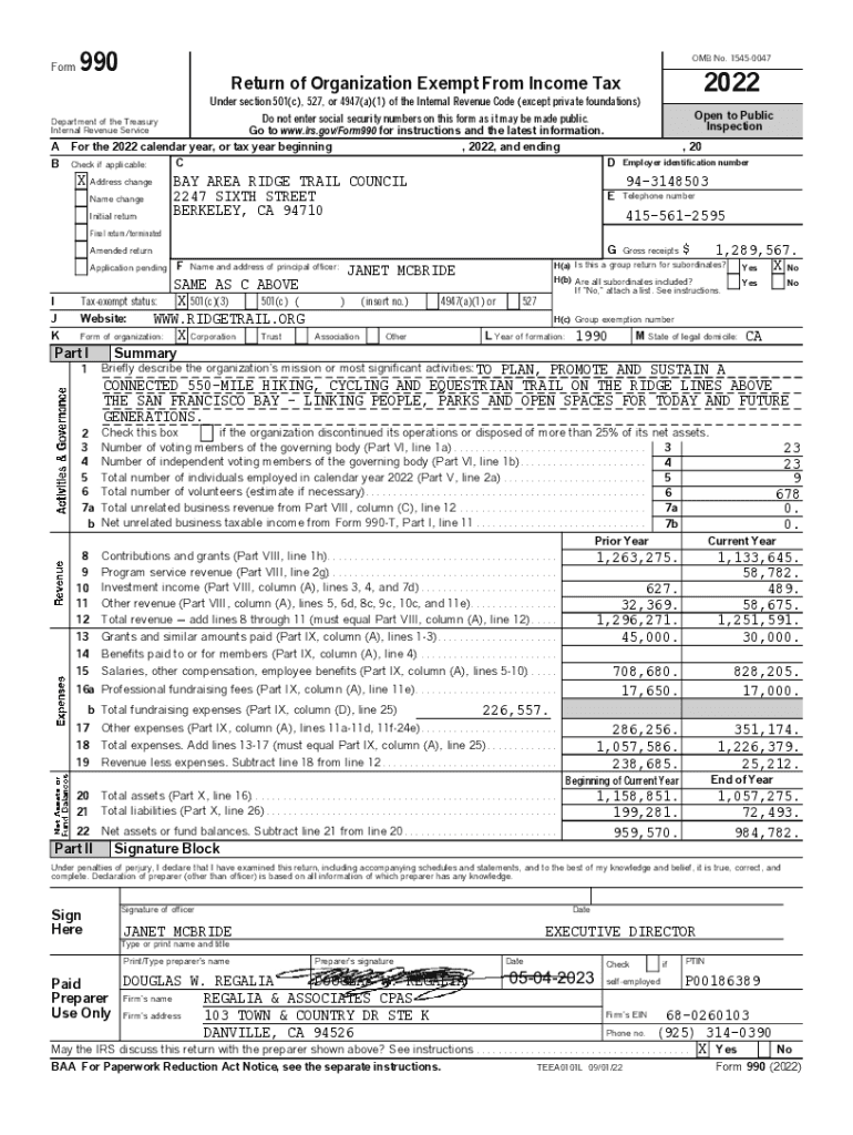 Get the free Bay Area Ridge Trail Dec 2022 Taxes - Final Form 990 Only For Public Inspection