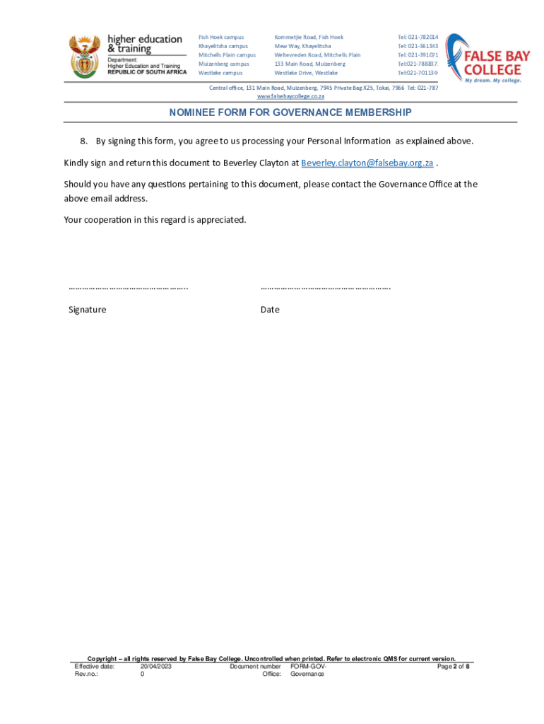 Get the free NOMINEE FORM FOR GOVERNANCE MEMBERSHIP What is it ...