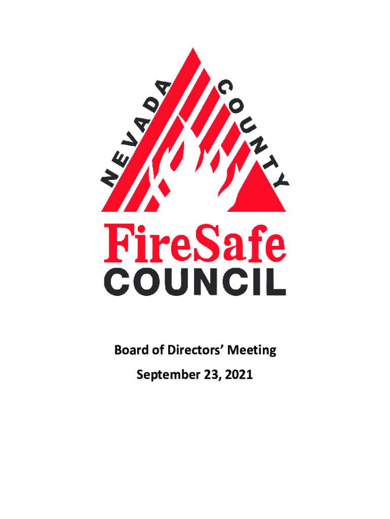 Board of Directors Meeting September 23, 2021Fire Safe Council of Nevada County P.O. Box 1112 Grass Valley, CA 95945 Phone (530) 2721122 Fax (530) 6481122 www.areyoufiresafe.com Board of Directors\'