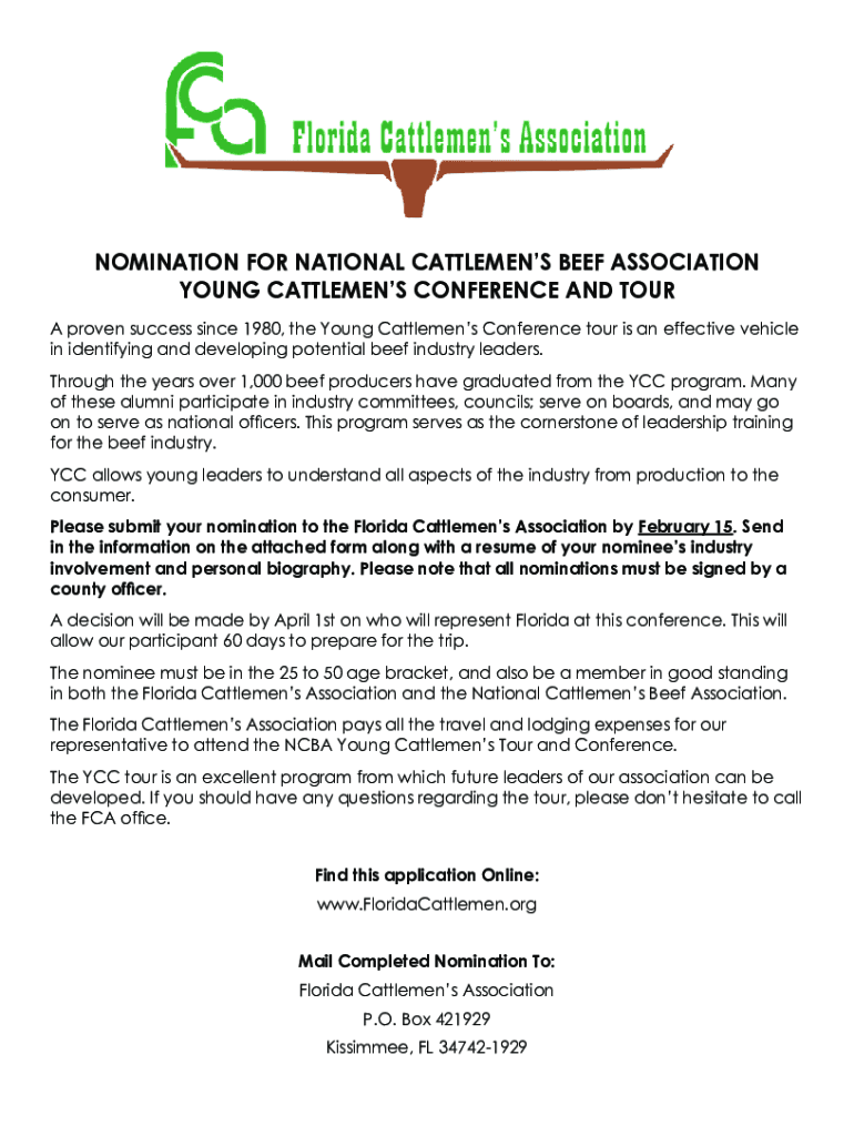 Get the free NOMINATION FOR NATIONAL CATTLEMEN'S BEEF ...
