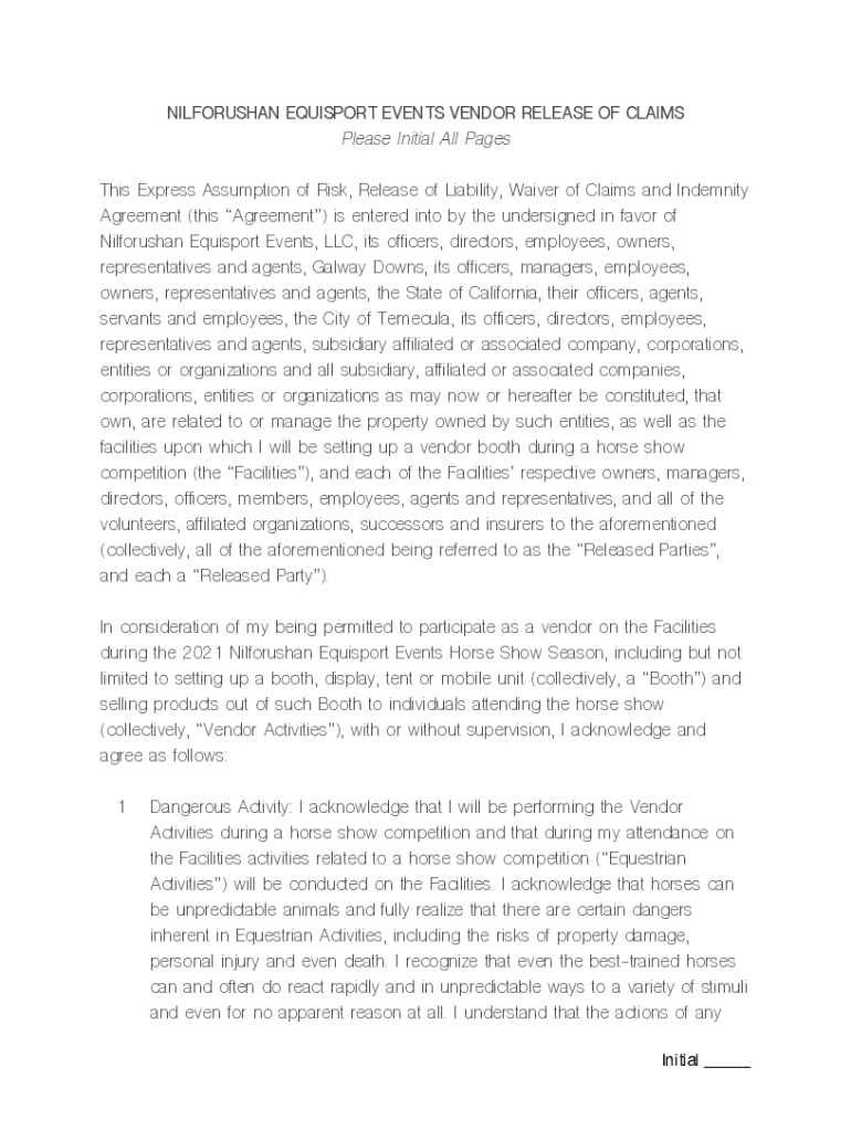 Get the free nilforushan equisport events vendor release of claims