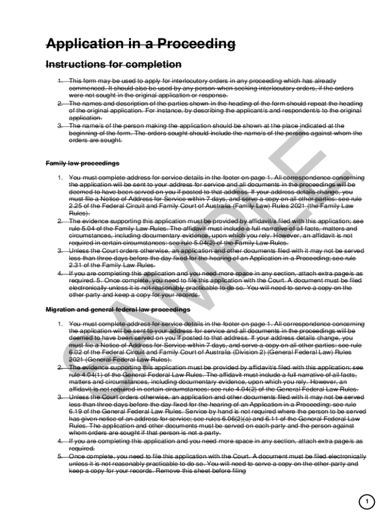 Application in a Proceeding instruction for completion 1. This form may be used to apply for interlocutory orders in any proceeding which has already commenced. It should also be used by any person