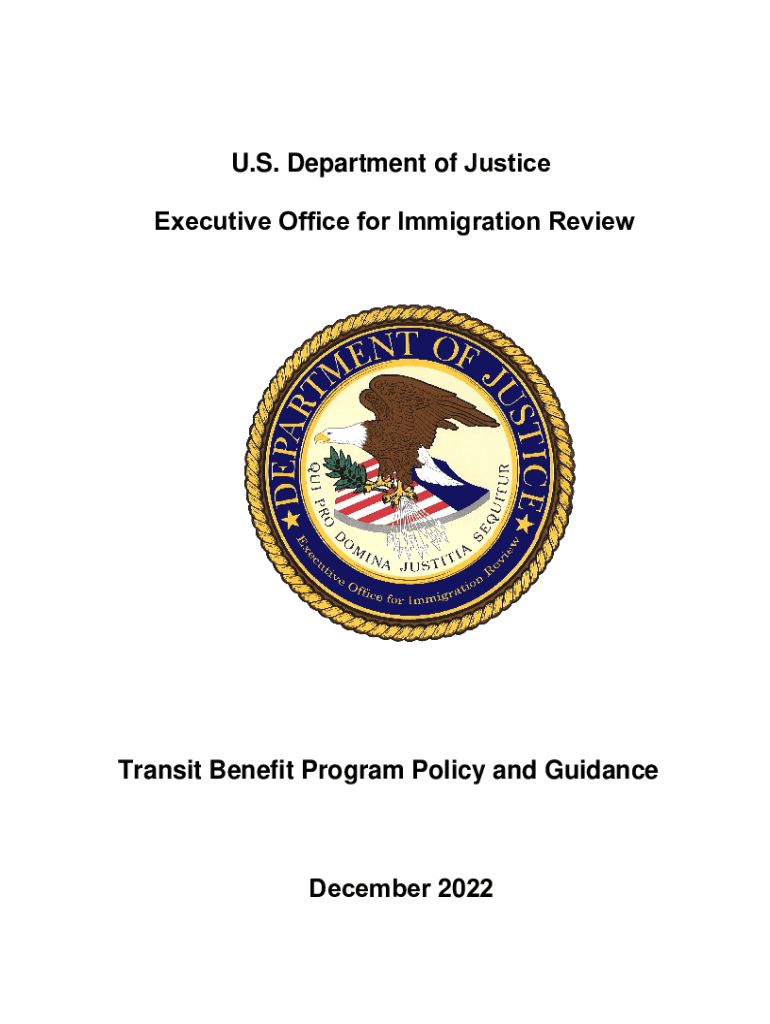 Executive Office for Immigration ReviewTransit Benefit Program Policy and Guidance December 2022Table of Contents