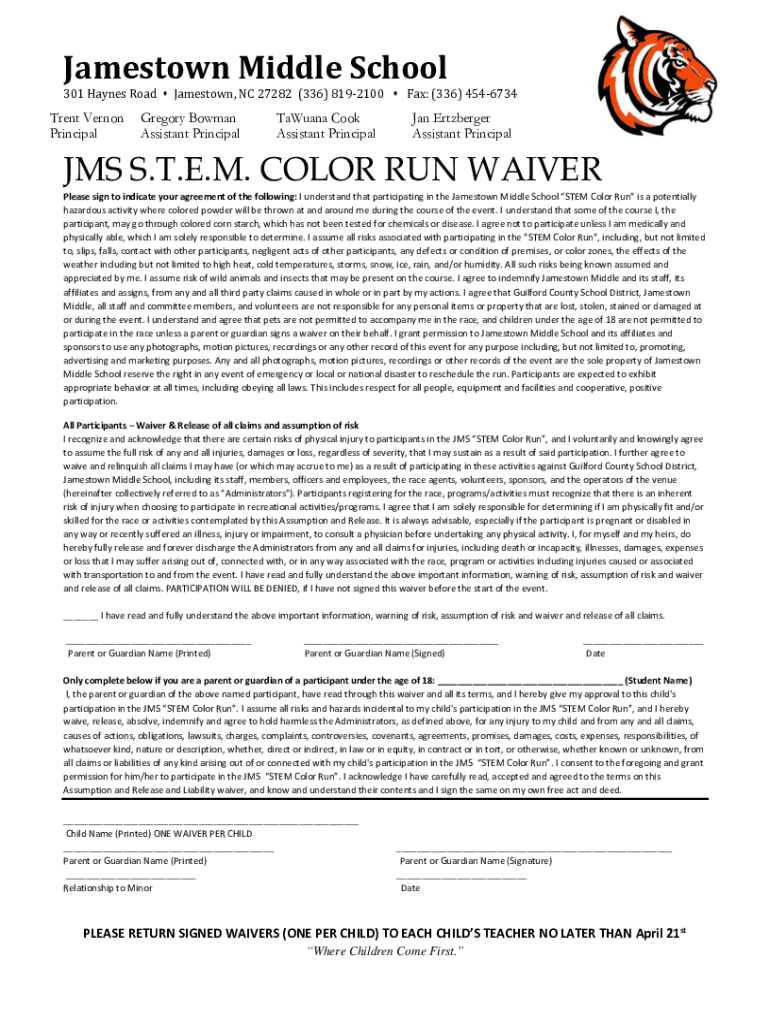 Jamestown Middle School301 Haynes Road Jamestown, NC 27282 (336) 8192100 Fax: (336) 4546734Trent Vernon Principal Gregory Bowman Assistant PrincipalTaWuana Cook Assistant Principal Jan Hershberger