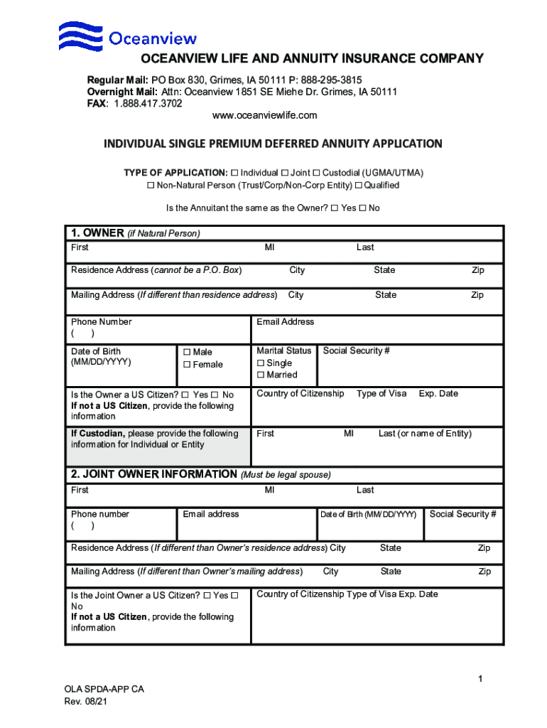 Get the free individual single premium deferred annuity application