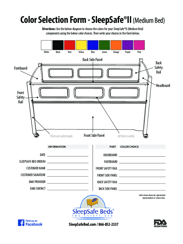 Color Selection Form SleepSafeII (Medium Bed) Directions: Use the below diagram to choose the colors for your SleepSafeII (Medium Bed) components using the below color choices. Then write your choices