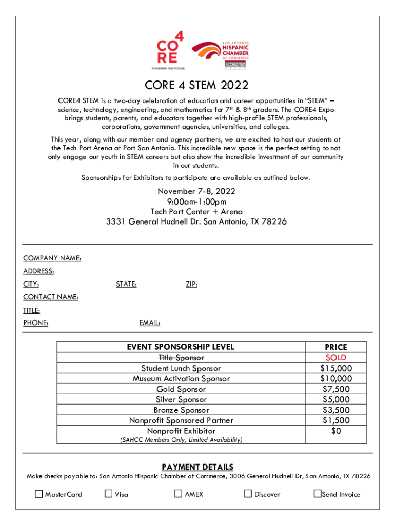 CORE 4 STEM 2022 CORE4 STEM is a today celebration of education and career opportunities in STEM science, technology, engineering, and mathematics for 7th & 8th graders. The CORE4 Expo brings students,